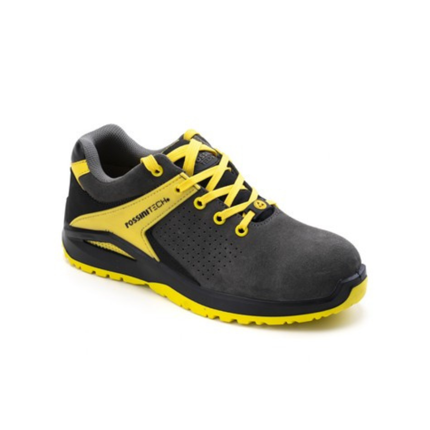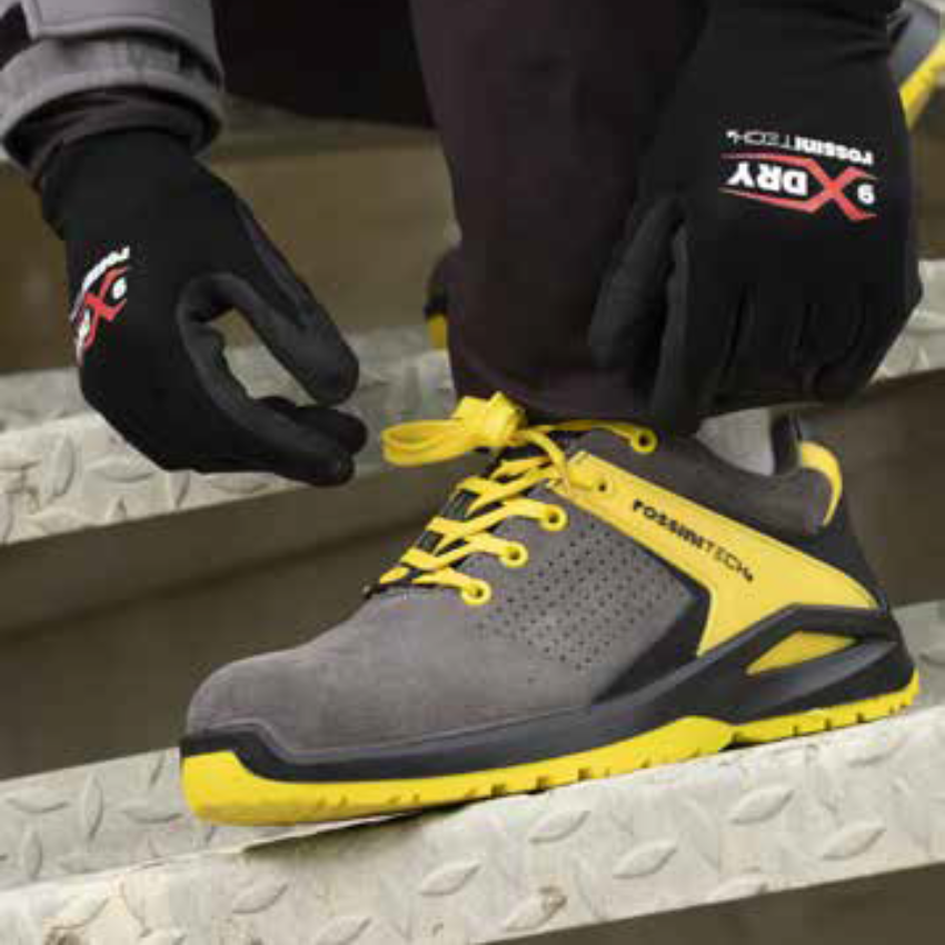 La calzatura Kandahar è la soluzione ideale per chi cerca una scarpa da lavoro comoda, sicura e dal look moderno. Realizzata in pelle scamosciata forata di colore grigio, con dettagli neri e gialli, offre un perfetto equilibrio tra resistenza e traspirabilità, rendendola adatta anche alle giornate più intense. All’interno, la fodera R-DRY antiodore nei toni del grigio e giallo mantiene il piede asciutto e fresco, mentre la linguetta imbottita garantisce una calzata stabile e confortevole. Il puntale in fibra di vetro e la lamina antiperforazione non metallica assicurano una protezione leggera ma efficace, senza compromettere la flessibilità. La soletta anatomica traforata, con inserto in gel antishock sul tallone, assorbe gli urti e riduce l’affaticamento, offrendo un comfort costante per tutta la giornata. È estraibile, traspirante e antistatica, per una maggiore praticità e igiene. Il sistema R-FRESH favorisce la circolazione dell’aria all’interno della scarpa, migliorando la ventilazione e mantenendo il piede sempre asciutto. La suola in poliuretano bidensità antiscivolo garantisce un’ottima aderenza e stabilità su qualsiasi superficie.