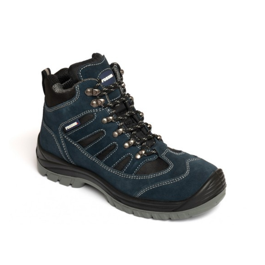La calzatura Toledo High è una scarpa da lavoro alta e resistente, progettata per offrire massima protezione e comfort in ogni ambiente professionale. Realizzata in pelle scamosciata blu con inserti in nylon e cuciture a contrasto, unisce robustezza e stile moderno, garantendo al tempo stesso una calzata comoda e traspirante. La fodera interna bicolore grigio e nero assicura una buona ventilazione e mantiene il piede asciutto anche dopo molte ore di utilizzo. La linguetta imbottita migliora la stabilità e riduce la pressione sul collo del piede, offrendo un comfort prolungato. Il puntale in composito protegge efficacemente da urti e schiacciamenti, mentre la lamina antiperforazione non metallica garantisce sicurezza e flessibilità nei movimenti. La soletta anatomica, traforata, estraibile, traspirante e antistatica, con tallone antishock, assorbe gli impatti e favorisce il benessere del piede durante tutta la giornata. La suola in poliuretano bidensità antiscivolo assicura un’ottima aderenza e resistenza all’usura, offrendo stabilità su qualsiasi superficie.