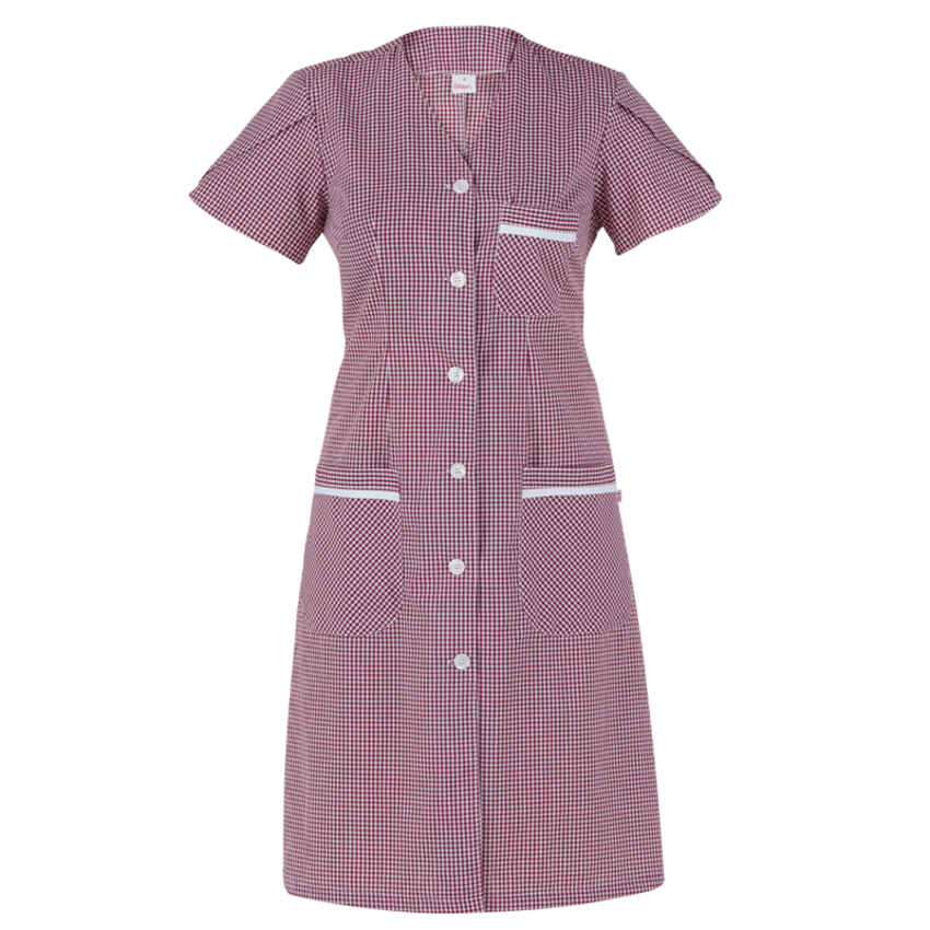 Il camice Viola si distingue per la sua vestibilità comoda, che offre un’ampia libertà di movimento. Dotato di uno scollo a V semplice ed elegante, presenta una chiusura centrale con sei bottoni in poliestere opaco. Le tasche, dal design geometrico, sono arricchite da uno sbieco bianco inserito a libro, che ne esalta la linea. Il tessuto è facilmente lavabile ad alte temperature, per una cura pratica e veloce. Disponibile nelle fantasie quadro bordeaux e quadro nero.