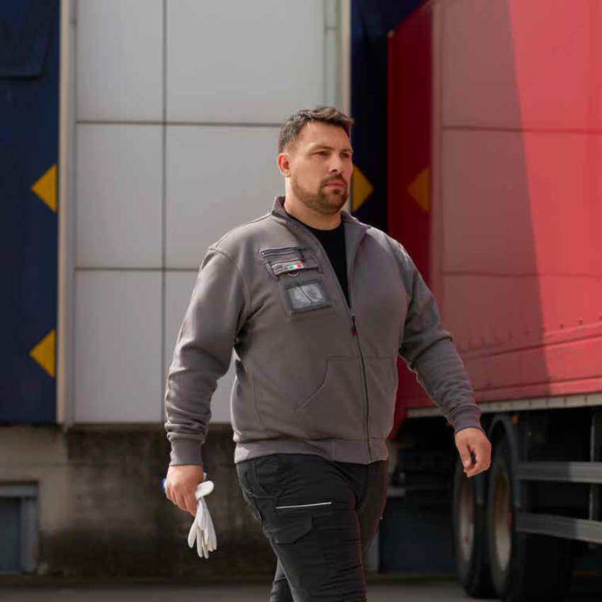 La felpa Quebec è pensata per chi cerca funzionalità, comfort e stile professionale in un unico capo. Robusta e curata nei dettagli, è ideale per chi lavora in movimento e ha bisogno di praticità senza rinunciare a un look moderno. Il collo alto con chiusura centrale a zip offre protezione e libertà di movimento, mentre la fascia parasudore interna al collo garantisce comfort anche durante le giornate più intense. Dotata di numerose tasche funzionali, la Felpa Quebec offre tutto lo spazio necessario: un taschino con aletta e chiusura a velcro e un taschino a filetto con zip sul petto destro, un porta badge in PVC removibile applicato con velcro e un portapenne a doppio scomparto sulla manica sinistra. Completano il design due ampi tasconi anteriori, perfetti per riporre gli oggetti di uso quotidiano. I polsi, il collo e parte della fascia girovita in maglia elastica assicurano una vestibilità comoda e stabile, mantenendo la forma del capo nel tempo. La scelta ideale per chi desidera un capo tecnico, resistente e dal carattere deciso, è perfetta per affrontare ogni giornata di lavoro con praticità e stile.