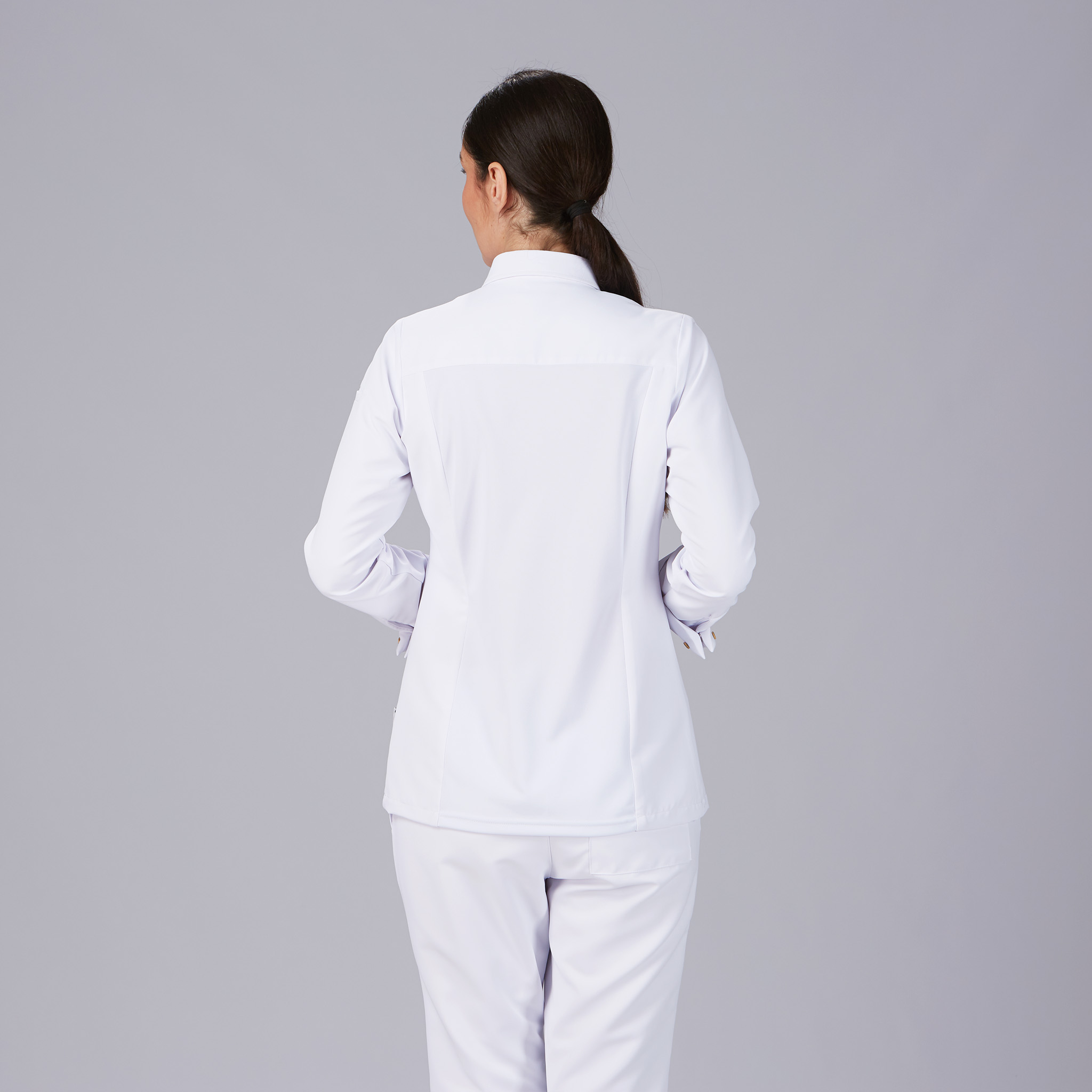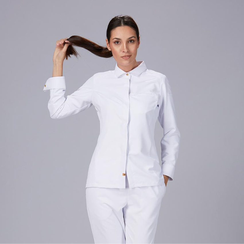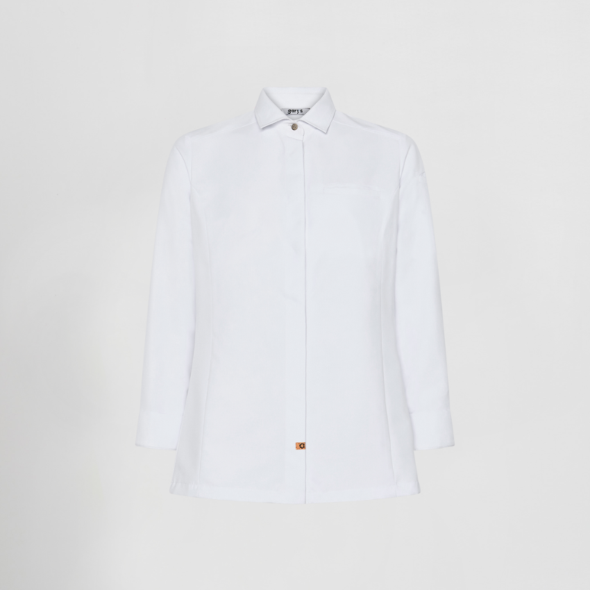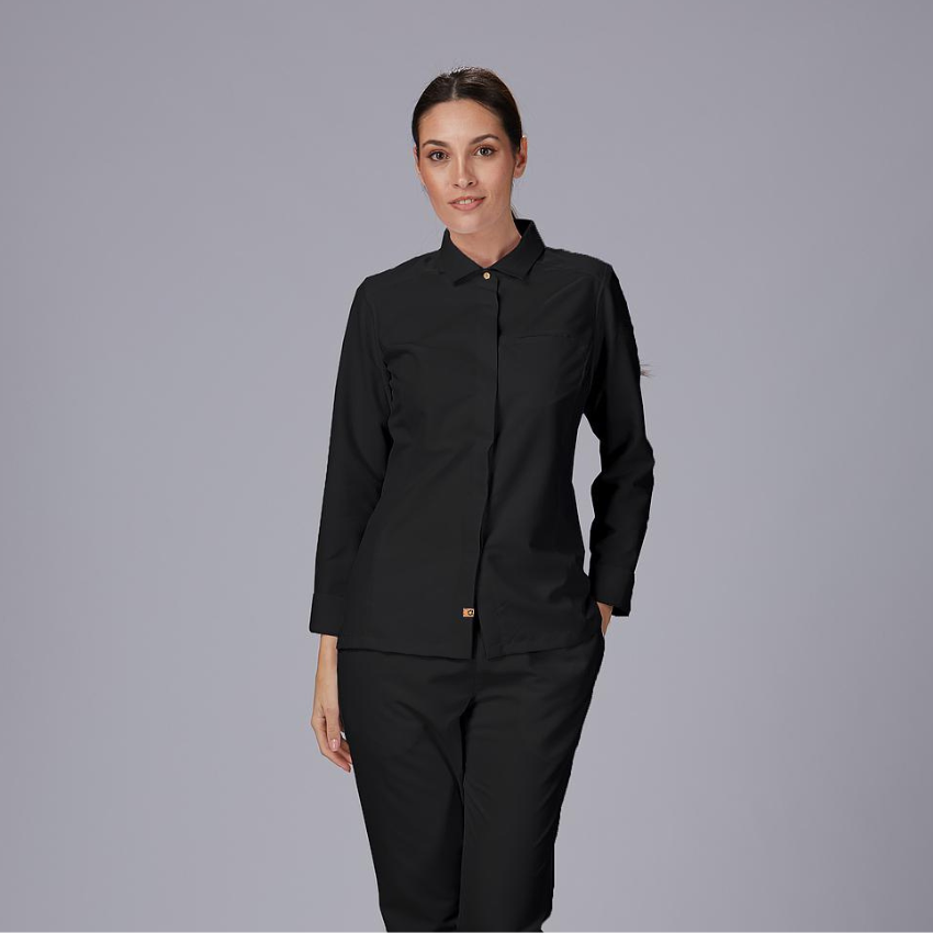 La giacca da cucina Moral con collo italiano è la scelta perfetta per chi desidera un look impeccabile e professionale senza rinunciare al comfort. Il suo taglio semi-aderente valorizza la figura femminile e garantisce libertà di movimento, rendendola ideale per chef e professioniste della ristorazione che vogliono distinguersi con eleganza. Realizzata in microfibra riciclata, rappresenta una scelta sostenibile, leggera e traspirante, con un’asciugatura rapida che la rende perfetta anche nei ritmi più intensi della cucina. Il sistema AIR DRY sulla schiena assicura una ventilazione ottimale, mantenendo freschezza e comfort per tutta la giornata. Il tessuto è inoltre resistente agli schizzi di candeggina diluita, per una durata superiore nel tempo. L’elegante colletto italiano con il primo bottone visibile e gli altri nascosti, insieme ai polsini risvoltati, dona un tocco di classe e professionalità. Le cuciture strutturate e il carré posteriore definiscono la silhouette, mentre le tasche a filo sul petto e sulla manica aggiungono praticità senza compromettere lo stile. Disponibile nei classici bianco e nero, si abbina facilmente a qualsiasi uniforme da cucina. Un capo che unisce professionalità, comfort e sostenibilità, pensato per chi vuole lavorare con stile e consapevolezza.