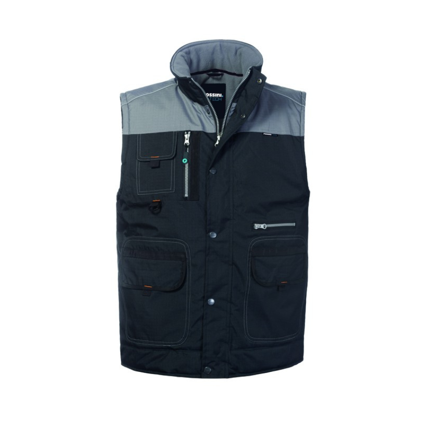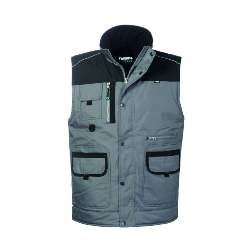 Il gilet Bradford unisce stile professionale e praticità in un capo imbottito pensato per offrire calore e libertà di movimento durante il lavoro. La sua struttura resistente e i dettagli tecnici lo rendono ideale per affrontare le giornate più fredde senza rinunciare al comfort. La zip frontale coperta da patella con bottoni automatici protegge efficacemente da vento e freddo, garantendo una chiusura sicura e funzionale. Il design è arricchito da una tasca portacellulare con aletta e velcro sul petto destro, una tasca verticale con zip accanto e un taschino a sinistra con chiusura a zip, perfetti per tenere tutto a portata di mano. Le due ampie tasche inferiori con patella e velcro e la tasca interna con chiusura a velcro offrono ulteriore spazio per riporre oggetti o strumenti di lavoro. La coulisse regolabile al fondo permette di adattare la vestibilità, mentre il foro di aerazione sulla schiena favorisce la traspirazione, mantenendo una temperatura corporea ideale. Completano il capo i profili rifrangenti e gli inserti a contrasto, che migliorano la visibilità e donano un aspetto moderno e dinamico.