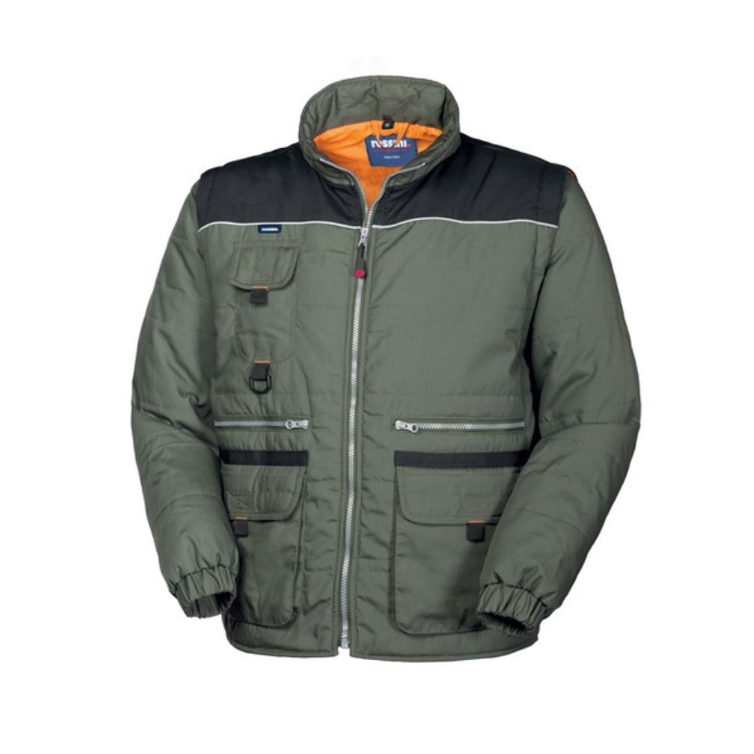 Il giubbotto Ronny è la soluzione ideale per chi desidera un capo da lavoro caldo, resistente e multifunzionale. Grazie alla sua struttura imbottita e ai dettagli tecnici, offre comfort e protezione anche nelle giornate più fredde, mantenendo uno stile moderno e professionale. La zip frontale garantisce una chiusura rapida e sicura, mentre le maniche staccabili permettono di trasformarlo facilmente in un gilet, rendendolo perfetto per ogni stagione. Il fondo posteriore arrotondato assicura una copertura ottimale durante i movimenti, mentre i polsi con elastico migliorano l’aderenza e il comfort. Il giubbotto è dotato di una tasca portacellulare con aletta e velcro sul petto destro, completa di anello in plastica per appendere strumenti o accessori, due tasche a filetto con zip e due ampie tasche inferiori con soffietti laterali e scaldamani, chiuse con patella e velcro. All’interno, una tasca con chiusura a velcro offre ulteriore spazio per oggetti personali. Il carré anteriore e posteriore è arricchito da profili rifrangenti, che aumentano la visibilità in ambienti poco illuminati, mentre gli inserti di colore a contrasto donano un aspetto dinamico e contemporaneo.