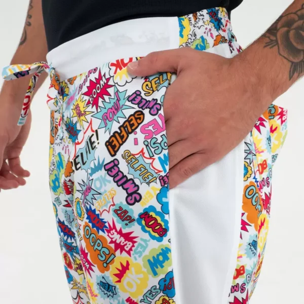 Il pantalone Zeno è pensato per chi vive in movimento e non rinuncia a comfort e personalità. Dal design sportivo e moderno, è realizzato con due tessuti innovativi che ne fanno un capo estremamente fresco, leggero e performante. La base è una microfibra di poliestere ultraleggera al 100%, trattata con l’esclusivo sistema Dry&Clean, che rende il tessuto idrorepellente e antimacchia, conservando a lungo l’intensità dei colori. Gli inserti in rete o piqué sui fianchi e sul fascione anteriore offrono massima traspirabilità, per una sensazione di freschezza anche nelle giornate più intense. Pratico e funzionale: ha due tasche alla francese sul davanti e due tasche posteriori, perfette per chi ama avere tutto a portata di mano. Disponibile in tre stampe esclusive – Boom, Rock e Beer – per chi vuole distinguersi con grinta e originalità.